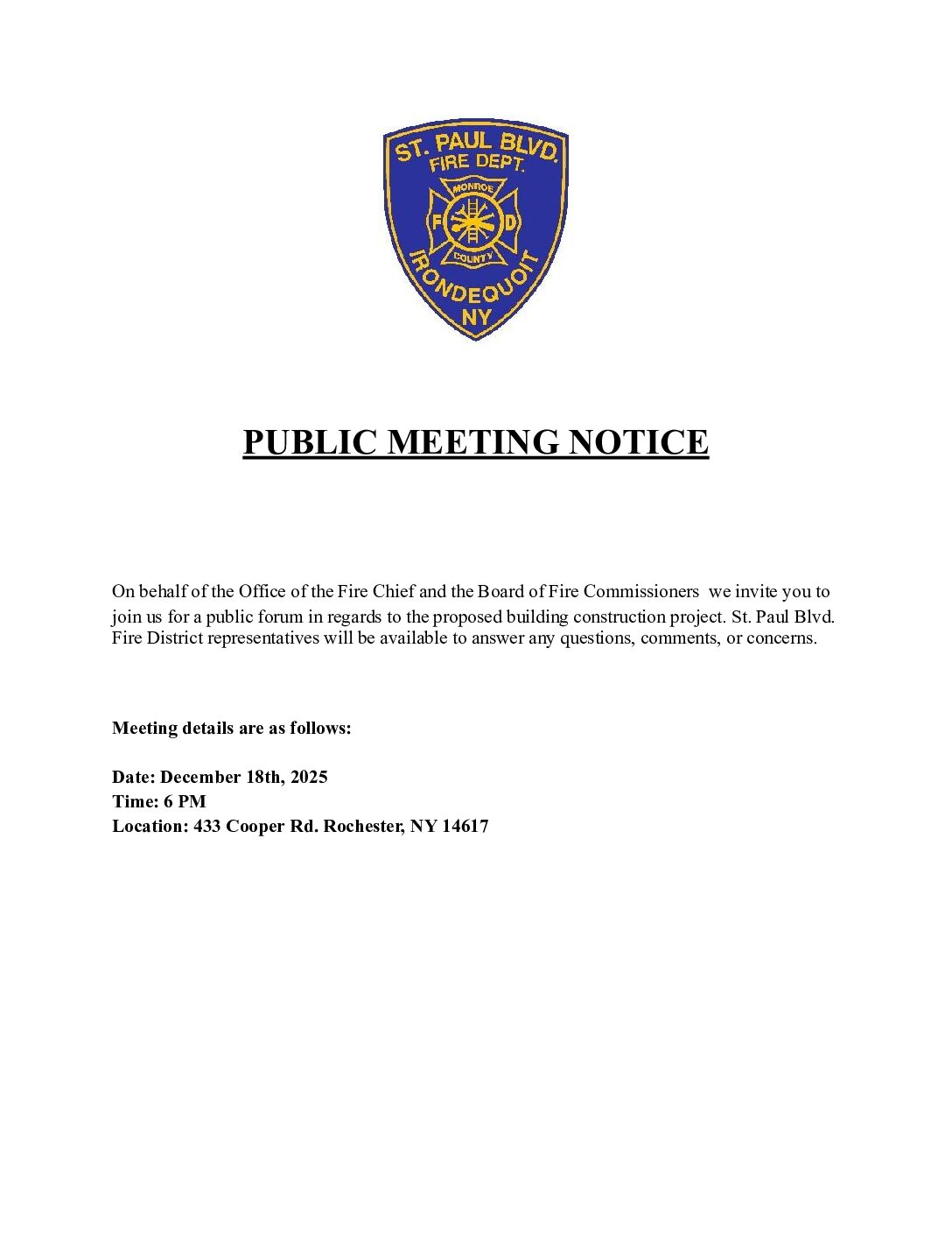 Since 1924, the St. Boulevard Fire Department has been tirelessly serving the areas of Irondequoit and Rochester, NY. Our organization is composed of dedicated volunteers and experienced paid firefighters.